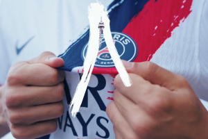 Pola anyaman ini melambangkan kekuatan dan ketahanan yang dimiliki oleh Menara Eiffel sekaligus karakter klub yang tidak mudah menyerah. Di bagian kerah dan sisi kaus, tertulis frasa “Ici c’est Paris” yang artinya “Ini adalah Paris.” Frasa ini memperkuat keterikatan PSG dengan kota asalnya dan semangat juang yang dibawa oleh para pemain.